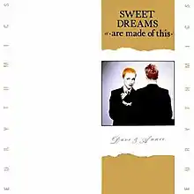 "Sweet Dreams (Are Made of This)" is a song by British new wave music duo Eurythmics. It is the title track of their album of the same name (1983) and was released as the fourth and final single from the album in early 1983. The song became their breakthrough hit, establishing the duo worldwide. Its music video helped to propel the song to number two on the UK Singles Chart and number one on the US Billboard Hot 100; it was their first single released in the US.
