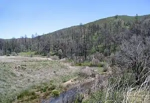 It has been controversial whether beaver (Castor canadensis) were native to San Diego County. However, a report on the fauna of the county by Dr. David Hoffman in 1866 stated "Of the animal kingdom we have a fair variety: the grizzly bear, the antelope, the deer, the polecat, the beaver, the wildcat, the otter, the fox, the badger, the hare, the squirrel, and coyotes innumerable."[16] Indirect evidence of beaver in San Diego County includes a creek named Beaver Hollow which runs 3.25 miles into the Sweetwater River about 6.5 miles southwest of Alpine.[17][18][19] Beaver Hollow is named on the USGS Topo Map for Cuyamaca in 1903, which is twenty years before California Department of Fish and Game began beaver re-introductions in California.[20]