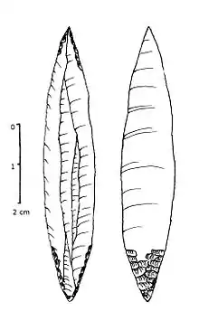 Three periods can be distinguished. The crude flint blades of Early Swiderian are found in the area of Nowy Mlyn in the Holy Cross Mountains region. The Developed Swiderian appeared with their migrations to the north and is characterized by tanged blades: this stage separates the northwestern European cultural province, embracing Belgium, Holland, northwest Germany, Denmark and Norway, and the Middle East European cultural province, embracing Silesia, Brandenburgia, Poland, Lithuania, Belarus, Central Russia, Ukraine and the Crimea. Late Swiderian is characterized by blades with a blunted back.[2]