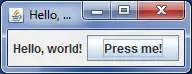This example Swing application creates a single window with "Hello, world!" inside: