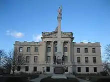 Possibly the gem of the Sycamore Historic District is the DeKalb County Courthouse. The Courthouse sits in the center of a square facing Illinois Route 64, directly across the north/south street, Main, from the Sycamore Public Library. It is a stunning example of Classical Revival architecture. The current structure was erected in 1905 being the third in a line of courthouses to serve DeKalb County.[7]