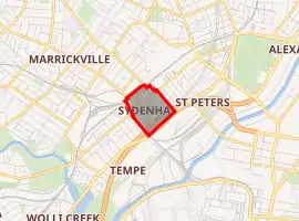 Sydenham is a suburb in the Inner West[2] of Sydney, in the state of New South Wales, Australia. Sydenham is located 8 kilometres south of Sydney central business district and is part of the local government area of Inner West Council. Sydenham is surrounded by the suburbs of Marrickville, St Peters and Tempe.