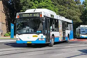 In the 12 months to June 2014, route 400 was the busiest route in Sydney with 4.7 million boardings.[3][4] From 1 July 2018 until 29 September 2018, it was jointly operated by State Transit and Transit Systems, following the latter taking over Burwood and Kingsgrove depots.