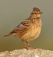 Sykes's lark (Galerida deva) is a species of lark found in the dry open country of India. Its distribution is mainly restricted to central India, although stray records have been found elsewhere on the sub-continent. It is identified by its prominent crest and its overall rufous colouration. It has streaks on its breast which are less prominent than those found in the Oriental skylark.