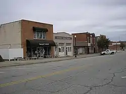 - T.C. Jefford Block (1911-1924), 106-108-110-112 East Kelly Street (photo 2). It has four one-story commercial facades, two with original prism glass over their entrances.[3]