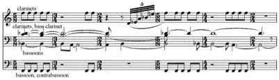 Winds: 1 piccolo, 2 flutes, 2 oboes, 1 English horn, 3 clarinets in Bb (1st doubling clarinet in A, 2nd doubling clarinet in Eb), 1 bass clarinet in B, 3 bassoons, 1 contrabassoon