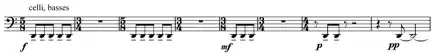 The bass ostinato again asserts itself early on, firmly linking the finale with the previous movements. The timpani carry the melody with celli and double basses in accompaniment.