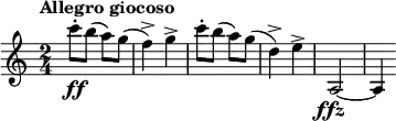 This movement is the only one with the character of a scherzo to be found in Brahms' symphonies. It is not in typical scherzo form, however, being in 2/4 time and in sonata form, without a trio. The sonata form itself is modified further, with a foreshortened recapitulation and with the secondary theme nearly absent in the development and coda.