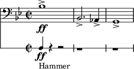 The movement is punctuated by two hammer blows. The original score had five hammer blows, which Mahler subsequently reduced to three, and eventually to two.[8][9]