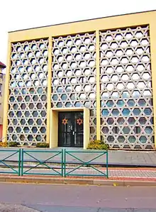 In 1956 the current synagogue was built a few meters from the previous location. Designed by architect Roger Zonca and Studio Constructa, it is located at the corner of Rue des Americains and Rue de la Mertzelle near Place Paul-Collin. During the European Days of Jewish Culture, the synagogue served as a concert space. The new synagogue was vandalized and set on fire on August 31, 1992, but was carefully restored.[2]