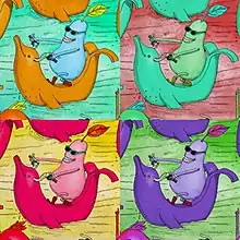 The music video for "Synergy" premiered on March 24, 2022.[2] It was directed by Samuel Halleen, who has directed Dance Gavin Dance music videos in the past, produced by Zoe Dinerstein, and features graphic designs from longtime collaborator John Howe, who has contributed to past music videos as well.[7] In the video, Jon Mess plays the character the Rat King, a rat exterminator who appears at a rundown motel in the middle of nowhere and experiences a run in with supernatural forces. The video is the first of a series of music videos that will tell a greater narrative.[8]