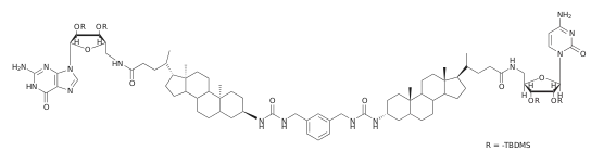 Inspired by gramicidin, this molecule was designed to be a barrel-shaped entity spanning a single leaflet of a bilayer membrane, becoming "active" only when two molecules in opposite leaflets come together in an end-to-end fashion. While the compound does induce ion-fluxes in vesicles, the data does not unambiguously show channel formation (as opposed to other transport mechanisms; see Mechanism).