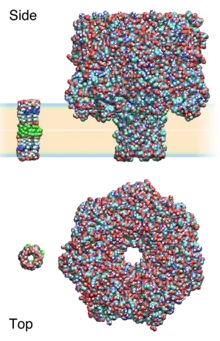 Synthetic ion channels are de novo chemical compounds that insert into lipid bilayers, form pores, and allow ions to flow from one side to the other.[1] They are man-made analogues of natural ion channels, and are thus also known as artificial ion channels. Compared to biological channels, they usually allow fluxes of similar magnitude but are
