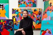 Synthia Saint James (born February 11, 1949) is an American visual artist, author, keynote speaker, and educator. She is best known for designing the original cover art of the hardcover edition of Terry McMillan's book Waiting to Exhale[1].She also designed the first Kwanzaa stamp for the United States Postal Service, which was first issued in 1997.[2] Then she designed the 2016 Kwanzaa Forever Stamp.[3]