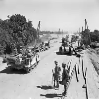 Once the two southern prongs were well engaged, a third force if formations drawn from Iraq Command, was planned to invade Syria. The bulk of the 10th Indian Infantry Division (Major-General William "Bill" Slim) was to advance north-west, up the Euphrates River from Haditha in Iraq (upstream from Baghdad), toward Deir ez Zor and thence to Raqqa and Aleppo. The manoeuvre was intended to threaten the communication and supply lines of Vichy forces defending Beirut from the Australians advancing from the south, particularly the railway line running northwards through Aleppo to Turkey, which was thought by some British strategists to be sympathetic to Vichy and Germany.[38] A group of two infantry battalions from the 20th Indian Infantry Brigade (10th Indian Division) and two from the 17th Indian Infantry Brigade (8th Indian Infantry Division) would operate independently to capture all the territory in north-eastern Syria. The 20th Indian Infantry Brigade were to make a feint from Mosul, and the 17th Indian Infantry Brigade would advance into the Bec du Canard (Duck's Bill) region, through which a railway from Aleppo ran eastward to Mosul and Baghdad.[39][40] Habforce was in Iraq attached to Iraq Command because it had struck across the desert from the Transjordan border as part of the relief of RAF Habbaniya during the Anglo-Iraqi War.[41] Habforce consisted of the 4th Cavalry Brigade, the 1st Battalion, Essex Regiment and the Arab Legion Mechanized Regiment supported by field, anti-tank and anti-aircraft artillery units, to gather in western Iraq between Rutbah and the Transjordan border.[42] As the thrust up the Euphrates took place, Habforce would meanwhile advance north-westerly to take Palmyra, Syria, and secure the oil pipeline from Haditha to Tripoli.[41]