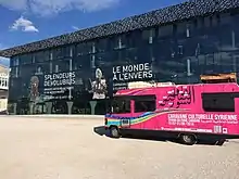 Finally, the caravan performs in very heterogeneous places. Not only does it exhibit in many different European countries, it also goes as much to major cities – such as Paris, Berlin or Brussels – as to small towns of the Gard region. In each of these sites, the exhibition can happen inside – in the Mucem for example – but also in the streets, or in a park – as in Bergen.