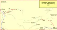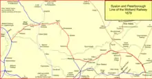Having failed to kill off the Great Northern Railway promoters' scheme, Hudson now took steps to enhance his access to East Anglia. The Eastern Counties Railway was established there and was planned to reach Peterborough. Hudson now proposed a new railway from the Midland Railway main line at Syston, north of Leicester, to Peterborough, where it could link with the Eastern Counties Railway.[6] The new line was expected to cost £700,000.[7]