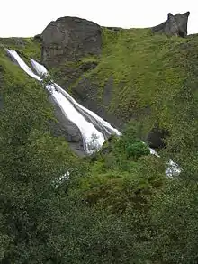 Systrafoss (Icelandic pronunciation: [ˈsɪstraˌfɔsː], "sisters' waterfall") is a waterfall in Iceland, found at Kirkjubæjarklaustur in Skaftárhreppur in the Suðurland region.