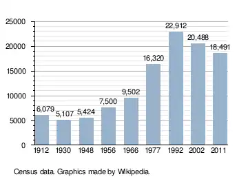 According to the 2011 census, the town had a population of 18,491. Of the residents for whom data were available, 91.1% were Székely Hungarians, 7.2% Romanians, and 1.6% Roma.[4] The historical demographic evolution is as follows: