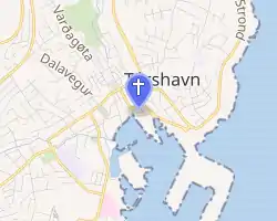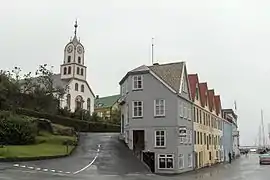 Tórshavn Cathedral (Faroese: Havnar Kirkja, or Dómkirkjan) is the second oldest received church of the Faroe Islands, on Tinganes in the old town of Tórshavn.[1] Painted white, and roofed with slate, it was established in 1788. The cathedral lies in the north of the peninsula of Tinganes and is one of the main attractions of the town. Like most churches of the country it belongs to the Evangelical-Lutheran national church of the Faroe Islands. Since 1990, it has been the seat of the Bishop of the Faroes and is therefore known as a cathedral.
