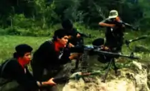 The Túpac Amaru Revolutionary Movement (Spanish: Movimiento Revolucionario Túpac Amaru, abbreviated MRTA) was a Peruvian Marxist-Leninist guerrilla group which started in the early 1980s. Their self-declared goal was to demonstrate to leftist groups in Peru that sought change through the current government the viability of radical revolution.[3] The MRTA also aimed to provide an alternative to another militant group, the Shining Path, which placed them in direct competition.[3] The group was led by Víctor Polay Campos until he was sentenced to 32 years' imprisonment in 1992[4] and by Néstor Cerpa Cartolini ("Comrade Evaristo") until his death in 1997.