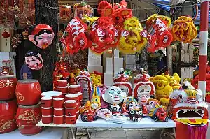 Tết Trung Thu (Chữ Hán: 節中秋) is a traditional Vietnamese festival held from the night of the 14th of the 8th lunar month to the end of the 15th of the 8th lunar month (Rằm tháng Tám). This festival has become a children's festival (Children's Tết),[2] also known as Tết Trông Trăng, Tết Đoàn Viên or Tết Hoa Đăng. Children look forward to this day because they are often given toys by adults, usually a star lamp, a mask, a kéo quân lamp, a tò he,... and eat bánh trung thu (bánh nướng and bánh dẻo). On this day, people organize a feast to watch the moon. When the moon is high, children will sing and dance while watching the full moon. In some places, people also organize lion dance, dragon dance for the children to have fun.