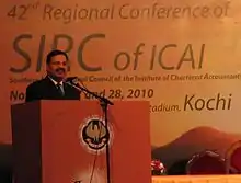 ![]() T N Manoharan addressing delegates of 42nd Regional Conference of SIRC of Institute of Chartered Accountants of India. | |