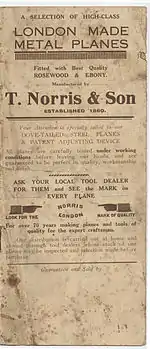 - Norris, T. & Son (c. 1908), Illustrated Price List Metal Planes, Lambeth, London