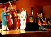 He started the Guru Sishyas Talavadya Kutcheri Concept where in it includes the lead mridangam played by himself i.e. the guru and his own trained students: the Sishyas on the instruments like mridangam, konnakol, thavil, ghatam, kanjira, and the morsing.[56] It was conducted in several platforms with good responses. He introduced and conducted orchestra with different percussionists with more than 100 students on stage in shanmukhanandha Hall, Mumbai [57] and similarly conducted 108 students performances on stage on all the instruments including drums in the Cleveland Tyagaraja festival.[58][59] Thereafter he conducted the similar performances in New Jersey and other places.[60][61]