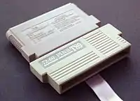 The T89 cartridge converter is a 60 to 72 pin adapter that allows NES owners to plug a 60-pin Famicom game into a 72-pin-based NES. The cartridge required the user to have the Famicom cartridge label facing the back as otherwise it would cause damage to the cart and/or system. There is a fabric tab on the converter to allow the easy removal of the device from the original front-loading NES and its subsequent top loader revision (although the Famicom cartridge was easy to access on the top loader, the converter itself would sit in the cartridge slot in a near flush like state, thus leaving the adapter difficult to remove).