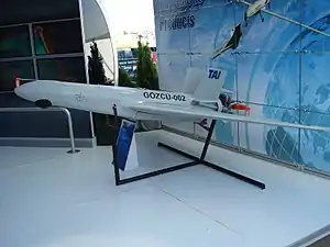 TAI Gözcü is a radio-controlled short-range tactical drone. Designed, developed and built by Turkish Aerospace Industries (TAI), the unmanned aerial vehicle (UAV) is in use by the Turkish Armed Forces for intelligence, surveillance, target acquisition and reconnaissance purposes. Gözcü is the Turkish word for observer.[1]