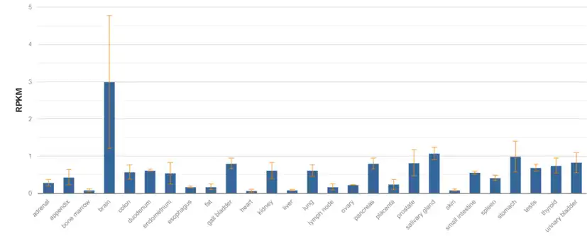 The protein is mostly found to be expressed in tissues of the brain and adrenal glands.[17][11]