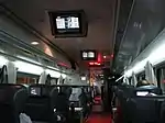 In first class, there are leather-coated seats in 2+1 arrangement, a visual and audio broadcasting system that can broadcast at least 4 hours on 4 different channels. Wi-Fi service is available with power inputs for laptops in business class.[4]