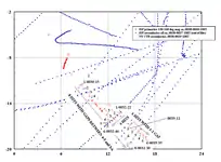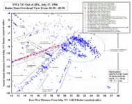 Radar data showing vehicle and/or object tracks within 10 nautical miles (19 km; 12 mi) of TWA flight 800 just before the accident[1]: fig. 25, p. 90