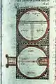 T and O map accompanied by a V-in-square map, from a copy of the Etymologiae (c. late 8th century).