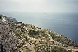 ![]() View of Filfla and the Mediterranean Sea from Ta' Dmejrek. | |