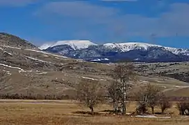 Table Mountain, el. 10,213 feet (3,113 m) is the highest peak in the Highland Mountains in Madison County, Montana. It is located in Beaverhead-Deerlodge National Forest. Headwaters of Moose Creek, Fish Creek and Hell's Canyon Creek, all significant tributaries of the Jefferson River flow off the face of the mountain.