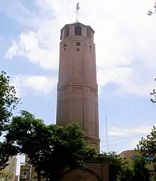 The Tabriz Firefighting Tower (also Yangin Tower; Persian: برج آتش نشانی, Azerbaijani: يانگين کوله سی) is a historical tower located in Tabriz, Iran. The tower, standing at 23 meters high, was built in 1917. It was used to investigate fire related incidents inside the city. The city was constantly observed from this tower for any signs of smoke and fire. Following any visual evidence, the firemen were informed and sent to the fire incident location.