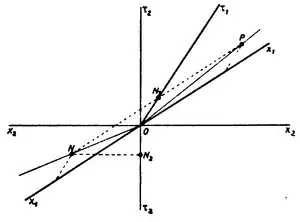 Tolman used the following variation of Einstein's thought experiment:[1][4] Imagine a distance with endpoints and . Let a signal be sent from A propagating with velocity towards B. All of this is measured in an inertial frame where the endpoints are at rest. The arrival at B is given by: