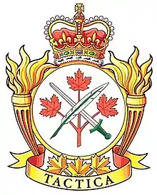 The Canadian Army Tactics School supports the training and education of Army and other Canadian Armed Forces personnel by providing formal courses, learning support, and Counter-Improvised Explosive Devices and other Centre of Excellence expertise. The Tactics School is focussed on developing the Army's future leaders.[2][3] Much of the school's curriculum revolves around command and employment of a combat team. The Tactics School also holds the Canadian Army Learning Support Centre which "was created to help the Army modernize its training methods [and] includes everything from hyper-realistic computer simulations to purpose-built models turned out using three dimensional printers".[4] Unique amongst Canadian Army training establishments, the School has a high number of civilian contractors, employees, and interns.[5]