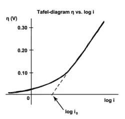 A verification plus further explanation for this equation can be found here.[4] The Tafel equation is an approximation of the Butler-Volmer equation in the case of .