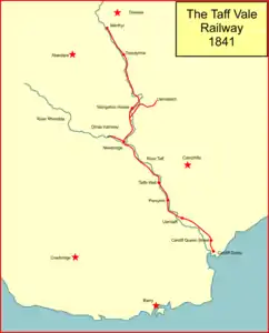 The Taff Vale Railway (TVR) was a standard gauge railway in South Wales, built by the Taff Vale Railway Company to serve the iron and coal industries around Merthyr Tydfil and to connect them with docks in Cardiff. It was opened in stages in 1840 and 1841.