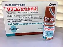 Tafluprost (trade names Taflotan by Santen Pharmaceutical and Zioptan by Merck in the US) is a prostaglandin analogue. It is used topically (as eye drops) to control the progression of open-angle glaucoma and in the management of ocular hypertension, alone or in combination with other medication. It reduces intraocular pressure by increasing the outflow of aqueous fluid from the eyes.[1][2]
