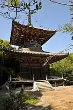 ![]() | Kumadani-ji tahōtō (熊谷寺多宝塔)[104] | 1774 | Awa | Tokushima Prefecture | 3 ken, tiled roof | Prefectural |
