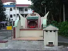 - Tai Wai Village, aka. Chik Chuen Wai (see above for history) (22.375674°N 114.178627°E). It is located next to Tai Wai station and the main commercial streets of the area. The village was walled to protect the villagers from bandits, pirates and/or unfriendly neighbours. It was rectangular in shape with 4 watch towers at its four corners. The towers and the walls have long been demolished leaving only the entrance gate and part of the front wall. The houses inside the walls are in rows, and many houses have been built outside the walls due to later development.[9] Historic and traditional buildings include the Entrance Gate, a Hau Wong Temple, the Wai Ancestral Hall and several old houses.