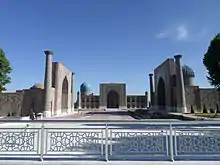 The Tajiks are an Iranian people, speaking a variety of Persian, concentrated in the Oxus Basin, the Farḡāna valley (Tajikistan and parts of Uzbekistan) and on both banks of the upper Oxus, i.e., the Pamir Mountains (Mountain Badaḵšān, in Tajikistan) and northeastern Afghanistan (Badaḵšān).[22] Historically, the ancient Tajiks were chiefly agriculturalists before the Arab Conquest of Iran.[25] While agriculture remained a stronghold, the Islamization of Iran also resulted in the rapid urbanization of historical Khorasan and Transoxiana that lasted until the devastating Mongolian invasion.[26] Several surviving ancient urban centers of the Tajik people include Samarkand, Bukhara, Khujand and Termez.