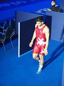 Tajmuraz Salkazanov (Russian: Таймураз Салказанов, Ossetian: Салхъазанты Мæирбеджы фырт Таймураз; born 6 April 1996) is a Slovak naturalized freestyle wrestler of Russian origins and Ossetian ethnicity who competes at 74 kilograms.[1][2] Representing Slovakia since 2018, Salkazanov became the 2021 European Champion when he defeated two–time World Champion Frank Chamizo and 2020 Individual World Cup champion Razambek Zhamalov back to back.[3] Prior, he claimed bronze medals from the 2019 World Championships at 79 kg and from the 2020 Individual World Cup at 74 kg and was also the 2018 U23 World Champion at 70 kg.[4] In April of 2022, Salkazanov became a two-time European champion, defeating Chamizo in the final by the score 7-5.[5]