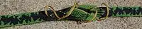 On the takadai it is possible to make intricate patterns using a technique called "pick-up braids". The braid has two sides of two contrasting colors and is usually linked on the edges. Then a pattern is formed by interchanging strands from the bottom braid to the upper braid, and by changing the braiding sequence.[1]