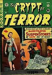 In 1950, EC publisher Gaines and his editor Al Feldstein discovered they shared similar tastes in horror and began experimenting with horror tales in their crime titles. Tales from the Crypt traces its origin to a Feldstein story, "Return from the Grave!", in EC's Crime Patrol (#15, December 1949/January 1950) with the Crypt-Keeper making his debut as host. Issue #16 featured more horror tales than crime stories, and, with issue #17, the title changed from Crime Patrol to The Crypt of Terror.[4] Due to an attempt to save money on second-class postage permits, the numbering did not change with the title and continued as The Crypt of Terror for the next two issues.