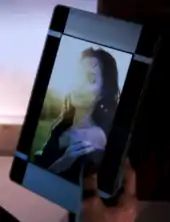 The game artists regularly drafted variations on Tali's face throughout the series' development.[22] BioWare's position on whether to reveal her face was a long-standing internal debate,[22] and the developers announced they were still unsure during Mass Effect 3's development.[12][15] Concept artist Matt Rhodes felt it would interesting to see how players compared her personality to her appearance, and how they would respond to an appearance that challenged their expectations as "a little too alien, just a little too repellant".[22] They were aware that either decision would likely annoy some people, and that no reveal could universally fit all views of Tali.[12][15] BioWare wished to unveil her face in a "tasteful way" outside of the game engine, and decided that a gift from Tali would be the best way.[23] A stock photo was used to ensure the face's closeness to a real photograph.[23] An in-game photo of Tali's face is available as a gift to the player-character Commander Shepard upon pursuing her Mass Effect 3 romance event tree.[24]